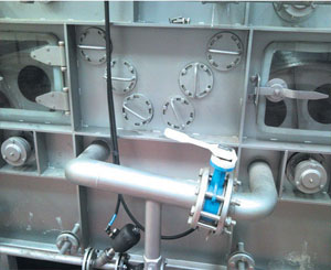 | 可以存儲工藝參數(shù)的控制系統(tǒng),配備液體、溫度、加料、PH值自動(dòng)控制系統(tǒng),簡單的操作,穩(wěn)定的品質(zhì)。 | 位于水洗機(jī)操作面的溢流口,可以根據(jù)工藝變化靈活調(diào)整大小和開閉。 |