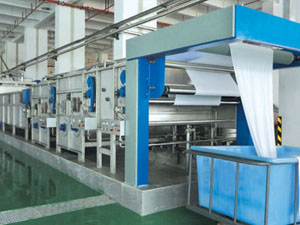 2、 汽蒸10-15分鐘,平幅水洗,低張力運(yùn)行,保證織物門幅、克重穩(wěn)定。