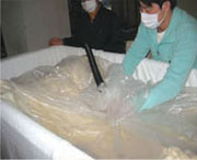 3、 比傳統(tǒng)染色機(jī)內(nèi)煮煉漂白工藝省水60%以上,省汽70%以上,省電40%以上。