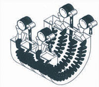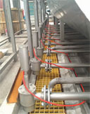 織物通過壓輥進(jìn)入下一個堆置槽,在溶液漏斗中,織物吸取足夠溶液然后進(jìn)入堆置槽,織物緩慢通過儲液罐使其有足夠時間在合適的溫度和化學(xué)條件下進(jìn)行反應(yīng),每階段的反應(yīng)時間可獨立設(shè)定。