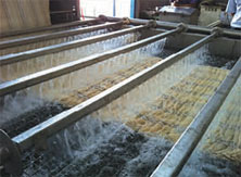 3、預(yù)洗部分采用平幅堆置和水洗,充分膨化,強(qiáng)力水刀穿透性水洗,浮色清洗更干凈。