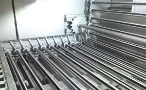 5、蒸箱內(nèi)掛布輥直徑為50mm的輥體,輕巧、堅固,在使用中順著軌道自轉(zhuǎn),避免出現(xiàn)橫檔印等瑕疵。