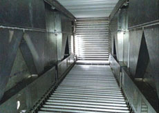 4、給濕水槽系統(tǒng):位于機(jī)械兩側(cè)的長而深的水槽被包圍在風(fēng)機(jī)循環(huán)系統(tǒng)中,使用直接蒸汽加熱,產(chǎn)生的所有飽和蒸汽全部進(jìn)入循環(huán)系統(tǒng),充分實(shí)現(xiàn)熱能和濕度的轉(zhuǎn)換。